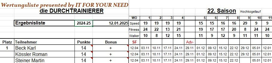 Im Jahr 2003 hatten Andreas Sachslehner, Joe Eilenberger und Christian Eckel die Idee, sich wieder jeden Sonntag zu einem gemeinsamen Dauerlauf zu treffen. Um sich daß telefonieren zu ersparen wurde ein Zählmodus ausgearbeitet. Der Dauerlauf wurde bei jedem Wetter absolviert und die aktualisierte Liste per E-Mail versendet. Abschließend bekam die Laufgruppe noch einen Namen – „Die Durchtrainierer“ wurden ins Leben gerufen.